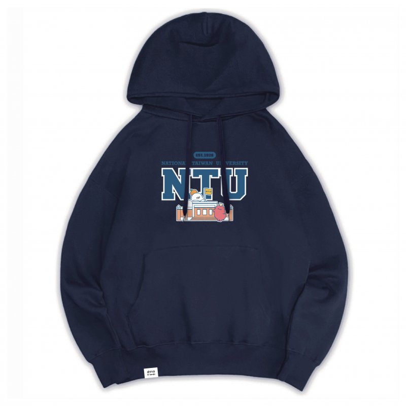 【預購至11/9,12/8陸續出貨】dtto friends合作款_NTU校門限定款_腸太郎&好鴨落肩帽T_深藍